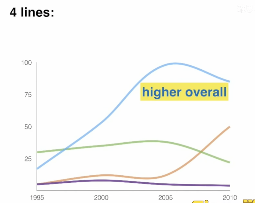 - 思路:从第一年开始,比较四条线;并找一个交叉点(较重要的点)