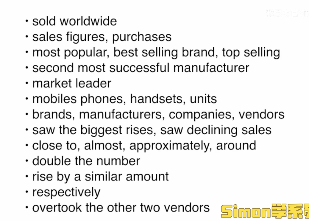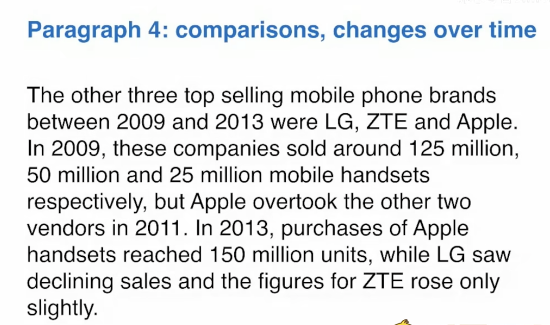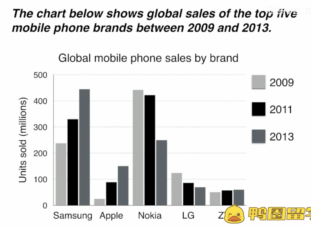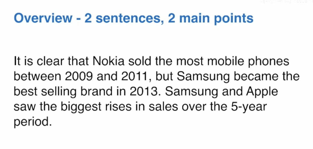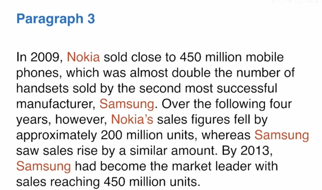 - Group: 第三段写三星和诺基亚(销量最高的两个),第四段写其他。