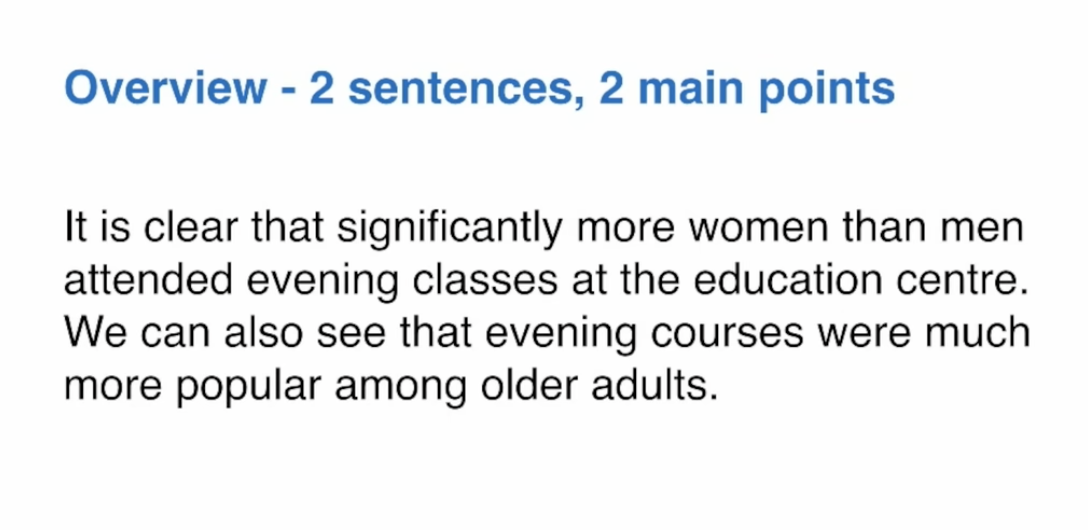 - First, Look for one main feature in each chart (1 and 2 paragraphs)